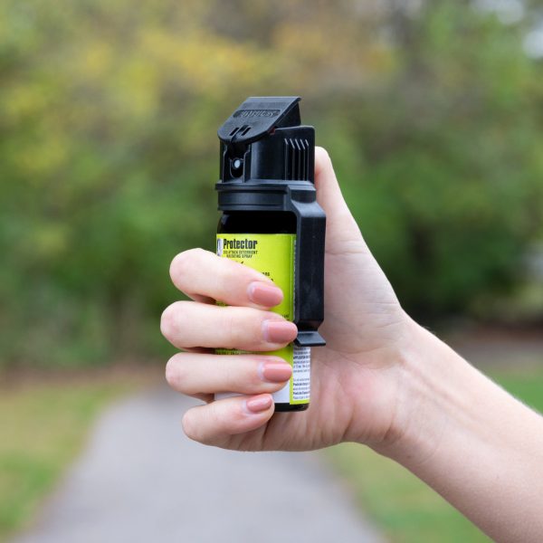 Лютивият Спрей SABRE DOG SPRAY With Belt Clip е защита за вас и вашият домашен любимец от агресивни кучета. Флаконът съдържа 7 пръскания с обхват на пръскане до 6 метра, който позволява защита на по-голямо разстояние от агресивното животно, което ви позволява да избягате на безопасно място. Формулата на спрея за кучета на Protector осигурява хуманна, но ефективна защита, с натурален пипер съдържа 1,0% основни капсаициноиди, максималната концентрация, разрешена от Агенцията за опазване на околната среда на САЩ (EPA). Включен клипс за прихващане.