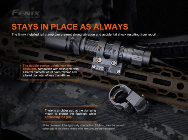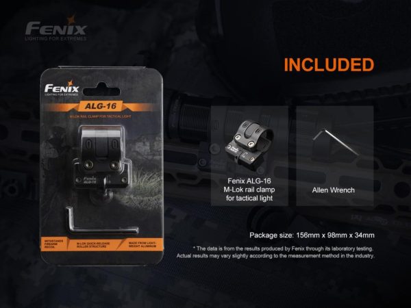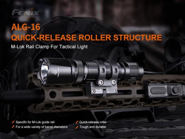 Fenix ALG-16 M-Lok Rail Mount е чудесно решение за монтиране на фенер към пушка с M-Lok монтажна релса. Изработен от анодизиран алуминий, Fenix ALG-16 M-LOK Rail Mount е здрав и лек.