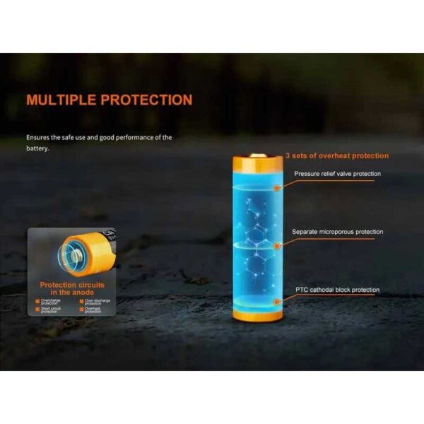 Зарядната батерия Fenix ARB-L21-6000 – 21700 6000mAh е литиево-йонна акумулаторна батерия с голям капацитет 21700, проектирана да осигурява изключителна мощност и удължено време за работа на вашите устройства. С огромен капацитет от 6000 mAh и максимален изход от 10 A тази батерия гарантира, че вашето оборудване ще остане захранено по-дълго време, дори при трудни условия. Вградената защитна схема предотвратява късо съединение, презареждане и прегряване, а вентилационните отвори за освобождаване на налягането осигуряват допълнителна безопасност. Дори след 500 цикъла на зареждане тази здрава батерия запазва 75% от първоначалния си капацитет, което гарантира надеждно захранване за години напред.