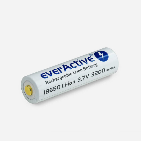Зарядна литиево-йонна батерия 18650 на EverActive с капацитет 3200mAH и зареждане чрез micro USB. Предназначен за употреба с LED фенери и други устройства, където е необходимо предпазване от неволно окъсяване, разряд с прекалено голям ток или до прекалено ниско напрежение. Уникалната функция на този продукт, че можете да го зареждате и без самостоятелно зарядно устройство — необходимо е само да имате на разположение стандартен USB порт или USB захранващ адаптер с microUSB накрайник. Акумулаторът може да подава до 7A ток в постоянен режим, или 12A в импулсен режим за случаите, в които е необходима увеличена мощност за кратки периоди от време (например, когато използвате максималния режим на силен LED фенер).