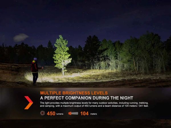 Челникът Fenix HL16 450 Лумена достига разстояния до 104 м., разполага с червени и бели светодиоди, плюс наклон от 60°, идеален за нощни дейности като бягане, къмпинг и трекинг. Лекият композитен материал осигурява изключителен комфорт и устойчивост на падане от 1,5 м, докато двоен превключвател предлага отделно управление за бяла/червена светлина и SOS режим, заедно с електронно заключване за предотвратяване на нежелано активиране и изтощаване на батерията, работи с AAA батерии до 100 часа в слаб режим.