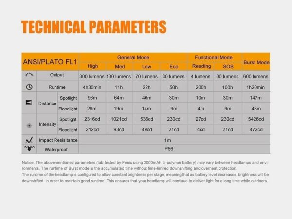 Характеристики на Челник Fenix HL40 LED 600 lm