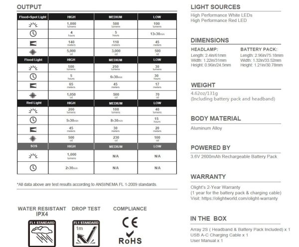 Характеристики на Челник Olight Array 2S 1000 Лумена