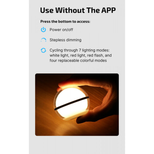 - Дълготраен спътник: Вградената батерия от 700 mAh поддържа до 40 часа употреба в режим на слаба бяла светлина.