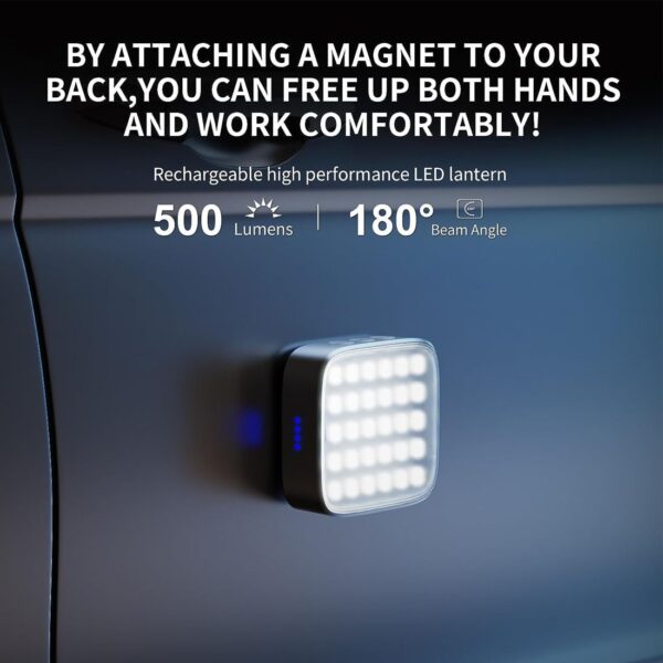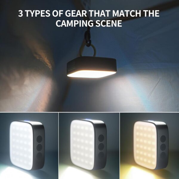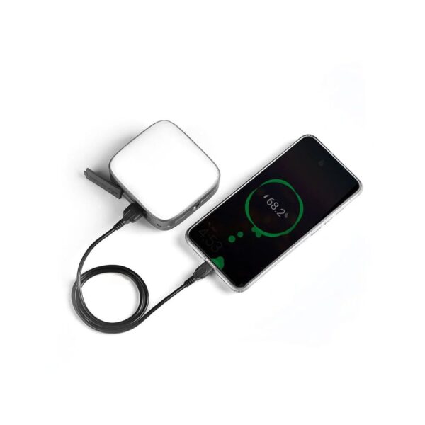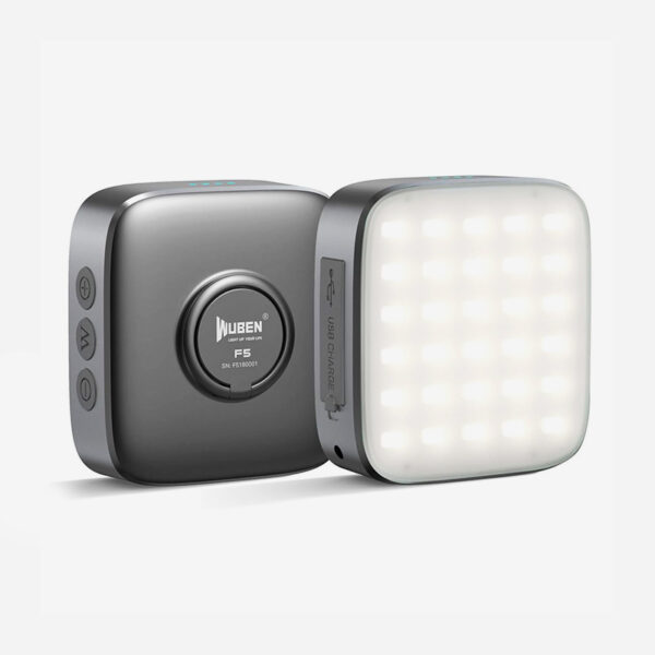 Къмпинг лампата Wuben F5 Power Bank Camping Light е универсална лампа, която може да се използва като къмпинг светлина, запълваща светлина за фотография или нощна светлина. Тя също така разполага със захранваща банка. Предлага 3 варианта за цвят на светлината, както и 3 нива на яркост. На F5 има три бутона; бутоните „+“ и „-“ ще увеличават и намаляват силата на светлината (за превключване на настройките за ниска, средна и висока мощност). Бутонът „W“ включва F5 с еднократно натискане и с двойно натискане преминава през 3-те цветови настройки на светодиода. Тези настройки са 5700К – студено бяло, 4500К – дневна светлина и 3000К топло бяло/жълто сияние. С максимална мощност от 500 лумена при режим прожектор, той може лесно да освети цялата ви палатка. Може да се окачи и на въже в палатката; силен магнит и s-образен куплунг осигуряват гъвкавост на монтажа.