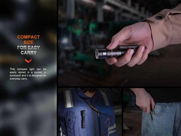 Зарядният фенер Fenix LD12R EDC е идеален за ежедневието ви. Този компактен, презареждащ се фенер разполага с два източника на светлина: мощна основна светлина с впечатляваща яркост и полезна странична светлина за практичност. Захранва се от включената в комплекта литиево-йонна батерия 14500, а фенера се зарежда чрез USB-C порт – скрит за допълнителна защита и изчистен външен вид. Клипсът на корпуса включва магнит, който ви позволява да прикрепите LD12R към повечето метални повърхности за осветление без ръце. Универсалността е в основата на този страхотен EDC фенер.