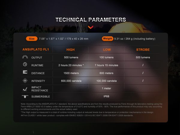 Характеристики на Фенер Fenix HT30R WHITE 500 Лумена LASER FLASHLIGHT