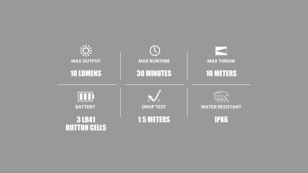 Фенерът Olight Imini10 Лумена Black е с ключодържател и с бързо освобождаване. Захранва се от 3 батерийки LR41, има един режим с мощност от 10 лумена и неутрален светодиод. За да активирате светлината, просто я извадете фенерчето от магнитната капачка. Магнитната основа ви позволява да го прикрепите, към железни повърхности. Бърз, супер миниатюрен и стилен, imini ви осигурява удобство, когато имате нужда от светлина.