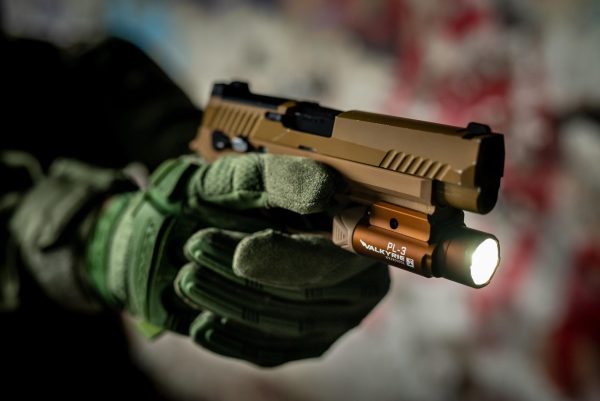 Пистолетният фенер с Olight Olight PL-3 Valkyrie 1300 Лумена е компактен оръжеен фенер, който може да бъде прикрепен на релса GLOCK и адаптер за релса Picatinny, с която се закрепи към оръжието. Позицията на фенера спрямо скобата може да се променя с помощта на тристепенна настройка. Valkyrie PL-3 може да се прикрепи към релсата с лесна за използване винтова приставка. Фенерът се притиска в шината директно от мястото на закрепване, което гарантира добро застопоряване при екстремни условия. Въпреки малкия си размер, той произвежда светлинен поток до 1300 лумена и обхват от 225 метра. Светлинният лъч на фенера е оптимална комбинация от дифузна светлина и прожекторна светлина. Захранван от две батерии CR123A.