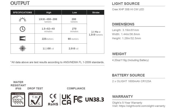 Характеристики на Пистолетен фенер Olight Olight PL-3 Valkyrie 1300 Лумена