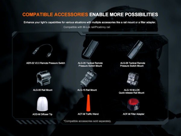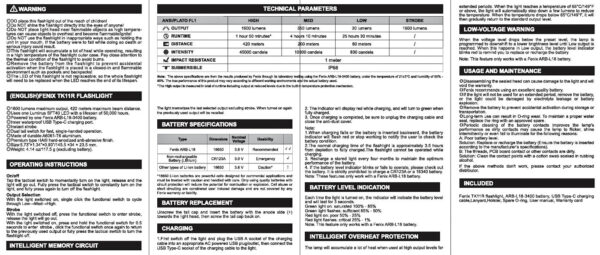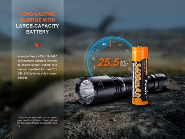 - Окомплектовка: Fenix ARB-L18-3400 акумулаторна литиево-йонна батерия, USB Type-C кабел за зареждане, ремък, калъф, резервен О-пръстен