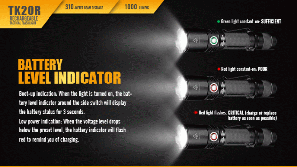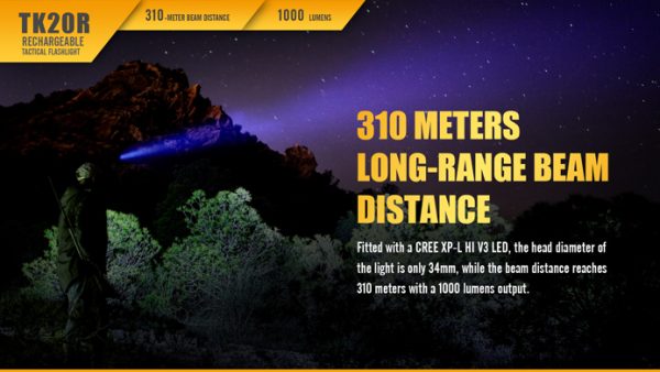 Фенерът Fenix TK20R е заряден, създаден да бъде винаги под ръка, предлагайки компактни размери, отлично представяне дори и в сурови условия, за спешни и ежедневни приложения. Fenix TK20R се отличава с вградения USB порт и зарядната батерия, която може да се подмени и също така да се зарежда чрез USB входа. Освен това е устойчив на вода, драскотини, удари, пясък, прах, топлина и студ.