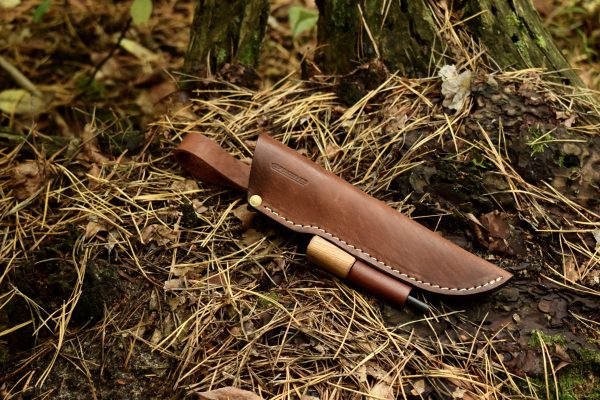 Кожен калъф с магнезиева запалка, за ножове с фиксирано острие. Канията е от естествена кожа, лепена и прошита със здрава найлонова нишка. Дебелина на кожата 3 мм. Допълнителна вложка под клина ви позволява да не ги режете със заточената част на острието. Свободно окачване с възможност за фиксирано окачване на калъфа на колана.
