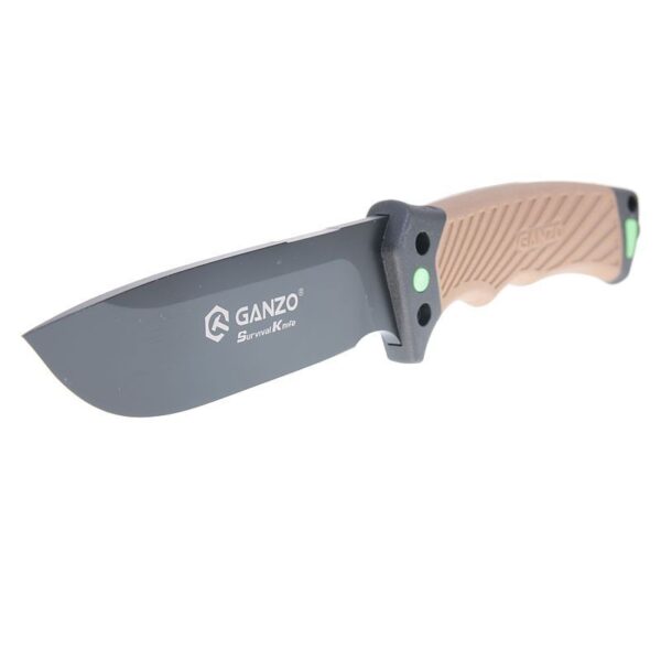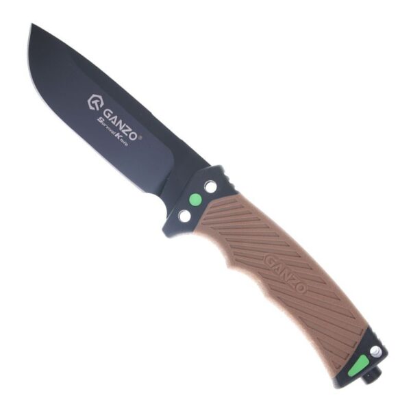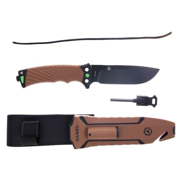 Фиксираният Нож GANZO G8012V2 8CR13 ABS е проектиран като незаменим инструмент за пътувания или експедиции. В комплект със кания, магнезиева запалка, диамантено точило и интегрирано острие за рязане на кабел. Острието е изработено от стомана 8CR13, тя съдържа голямо количество въглерод с твърдост 58 HRC, устойчива на корозия и може да се използва без проблеми при условия на висока влажност. Ръкохватката е изработена от ABS пластмаса от групата на термопластмасите, които са известни със своята здравина и осигурява удобен и сигурен захват при работа с ножа.