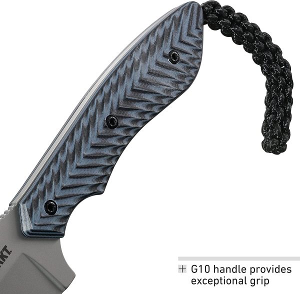Ножът CRKT CRKT S.P.E.C. 8Cr13MoV G10 Grey е страхотен фиксиран нож, проектиран от Алън Фолтс. Името вече го казва: S.P.E.C. е малък фиксиран нож с острие в стил сатър. Създаден за ежедневна употреба. Като белене на ябълка или изпълнение на задачи в гаража. Алън Фолтс е и дизайнер на известната минималистична колекция CRKT. Ръкохватката е изработена от зашеметяващ наслоен G10, чийто жлебове ви осигуряват допълнително сцепление, което дава чудесен захват в ръка. Острието е изработено от стомана 8Cr13MoV, която лесно се заточва. Черният, плетен възел в края на ръкохватката е удобен за малкия пръст и също така служи като помощ при издърпване от пластмасовата кания.