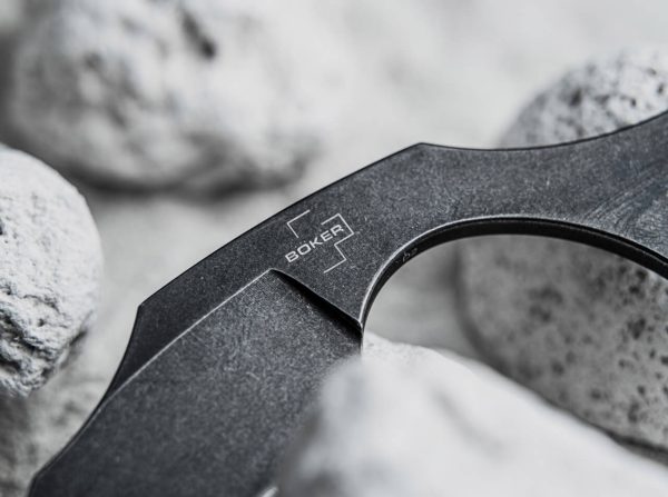 Ножът Карамбит Böker Bad Moon е с минималистичен вид и максимална функционалност. Изцяло стоманената конструкция е оборудвана с острие Hawkbill, изработено от стомана с екстремно задържане на ръба D2, чиито линии продължават в извитата ръкохватка и по този начин гарантират много ефективна употреба. Целият нож е подсилен с тъмно покритие stonewash. Характерно за този тип ножове е голямата халка в края на ръкохватката, която гарантира сигурна позиция на ръката и може да се използва и като отвор за паракорд. В комплект с изработена по поръчка кания Kydex.