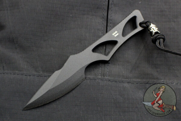 Ножът Spartan Blades Enyo All Black AUS-8A е солиден и къс нож за врата със забележително добра ергономичност. Основателите на Spartan, Марк Кери и Къртис Ловито, са проектирали Enyo като функционален и универсален нож за врата. Липсата на чирени изглежда е недостатък за ергономичността. Въпреки това, благодарение на дебелината на острието и добре разположените извивки Enyo се усеща чудесно в ръката. Дебелината на острието от 4,8 мм също гарантира, че Enyo може да се справи сам. По-силен от джобно ножче и също толкова компактен.