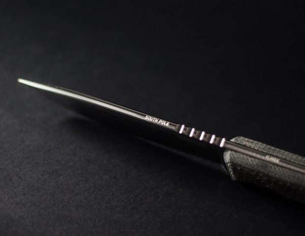 Ножът South Pole на литовския майстор ножар е направен от стомана Elmax (heat/cryo-treated) закалена до 60-61 HRC. Изцяло ръчно направен. Ръкохватка с много добра ергономия в черен цвят от материал Canvas Micarta. Кания от Kydex, подходяща за носена на колан. Всяка бройка идва със сертификат с датата на производство и единиците на закалка.