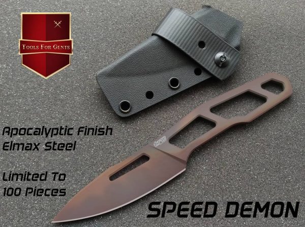 Ножът TRC Knives Speed Demon тежи само 70g и разполага с иновативен дизайн на градски нож със скелетонизирана дръжка. Ако избирате нож за всеки ден, с TRC Knives Speed Demon няма да сбъркате, защото е толкова остър, колкото и изглежда. Ножът е достатъчно малък, за да се носи удобно, но се справя и с най-трудните задачи за рязане. Дебелината на острието е 4,2 мм, а дължината 80 мм. Включена е и ръчно изработена Kydex ® кания.