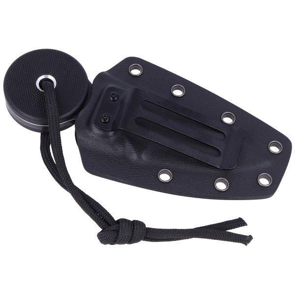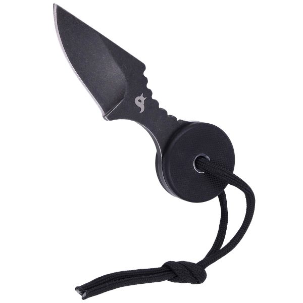 Нож за врат Fox ARROW FIXED KNIFE 440C G10 black е изработено от неръждаема стомана 440C, характеризираща се с висока твърдост, добро задържане на острието и висока устойчивост на корозия. Обикновеното, гладко острие е плоско заточено за отлични характеристики на рязане с Black Stonewashed покритие. Ръкохватката е направена от черен G10 композит във формата на кръг, който удобно приляга в ръката. Текстурирането на ръкохватката подобрява сцеплението с удобно място за поставяне на пръстите, за по-добър захват в горната част за сигурна позиция на палеца са направени нарези (джампинг). В центъра на ръкохватката има отвор за ремък за безопасност или декоративен шнур.