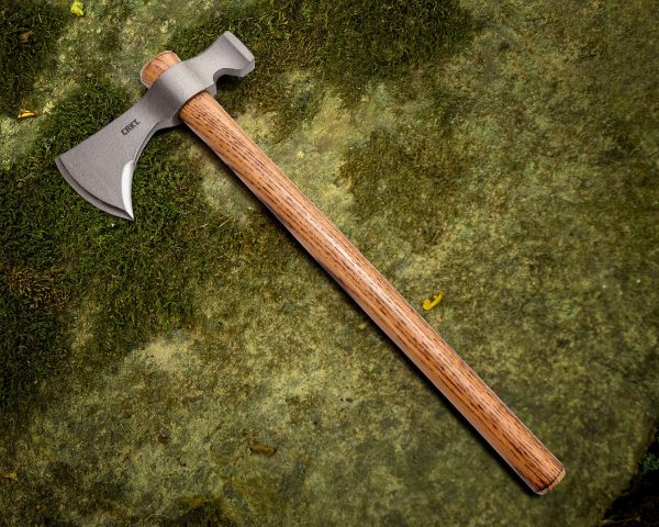 Томахавката CRKT Woods Chogan T-Hawk е лагерна брадва с ръкохватка от хикори, ковано острие и чук. Tя ще улесни живота ви, когато сте в пустошта. Острието на Chogan T-Hawk е направено от въглеродна стомана 1055, която е горещо изкована. С основни и вторични скосове, които са равни, той реже дървен материал като бобър. Главата на чукът е полезна за забиване на пирони и колове за палатки и хамаци, когато сте на къмпинг или на туризъм. Дебелата дървена ръкохватка е произведена в САЩ от дървесина хикори от Тенеси. Удобна е в ръката и е покрита с лаково покритие, което добавя издръжливост.