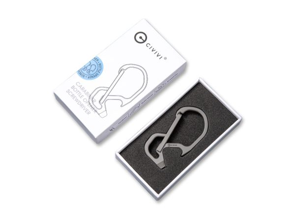 Civity Click Titanium Gray съчетава в компактните си размери карабинер, отварачка и отвертка. Изработен от титан и е с тегло само 9гр.