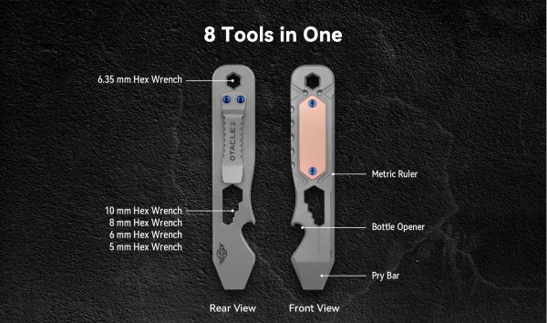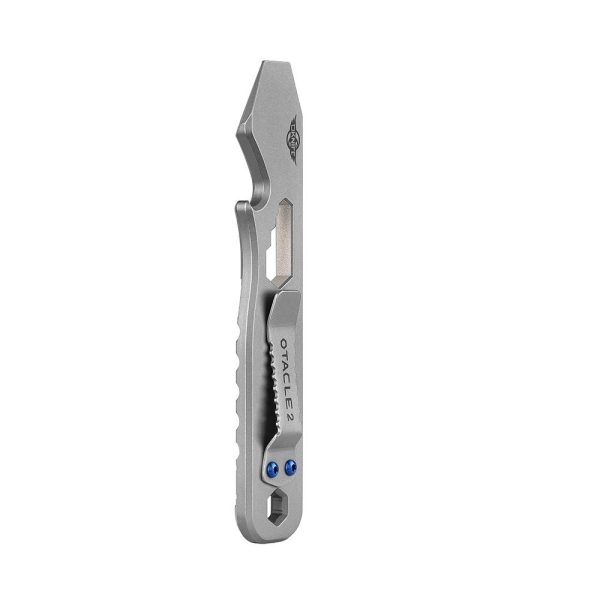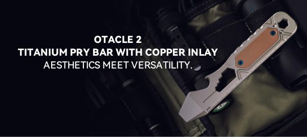 Мултитулът Olight Oknife Otacle 2 е универсален инструмент който съчетава мини лост , отварачка за бутилки, метрична линийка, и 5 шестограмни ключа. Otacle 2 е прецизно обработен от висококачествена титаниева сплав с висока якост и отлична устойчивост на корозия. Финишът е stonewash с медна инкрустация и лъскави сини винтове с атрактивен външен вид. За завършек на универсалният инструмент е добавен титаниев джобен клипс който позволява да го прикрепите здраво, към джоб, раница или да го закачите на своя ключодържател. Otacle 2 е вакуумиран, за да се сведе до минимум вероятността от окисление на медта по време на транспортиране. Въпреки това, по повърхността на медта може да има петна от патина когато пристигне, което е нормално явление. В комплект с връзка от паракорд. Olight Oknife Otacle 2 е лесен и за използване с една ръка.