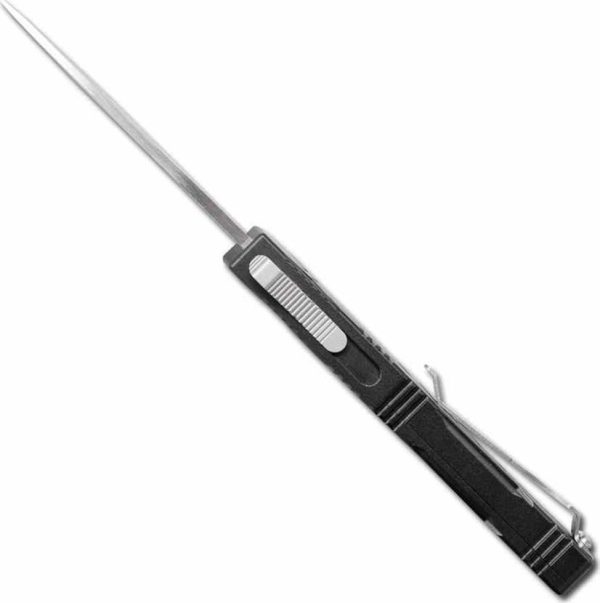 Special Forces OTF Black (Out The Front) с автоматично отваряне и затваряне, специално проектиран за EDC (ежедневна) употреба. Острието е изработено от D2 стомана със сатенено покритие, устойчиво на корозия, абразия и износване, с Drop Point форма и класическо скосяване Flat Grind. Ръкохватката е изработен от Алуминий.