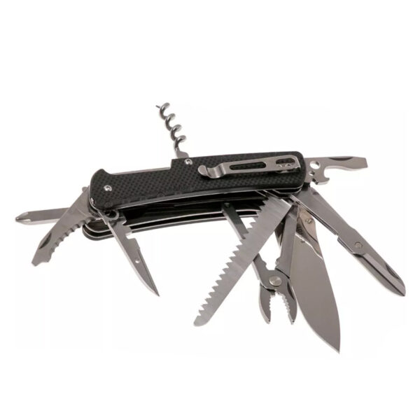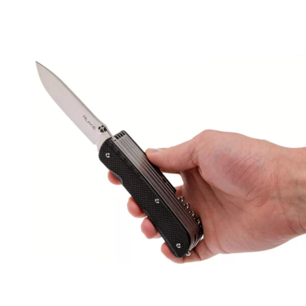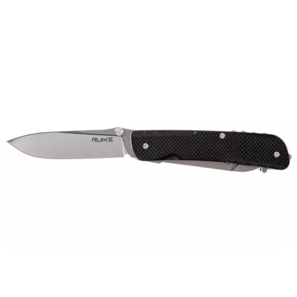 Мултифункционалният Нож Ruike LD51B е джобно ножче, подобрено с множество инструменти. Нещо като швейцарско джобно ножче, но не е произведено в Швейцария. Ruike LD31 е джобно ножче с отваряне с една ръка и двойно заключване. Двойно заключване? Да! Ножът се държи на място чрез плъзгаща се връзка. Точно както е обичайно за известните червени джобни ножове. В допълнение към плъзгащата се връзка, Ruike е добавила и линерлок в дръжката, за да гарантира, че плъзгащата се връзка няма да се затвори, когато не искате. Невероятно безопасна система, идеална за интензивна употреба. За този нож Ruike е избрала шведска стомана Sandvik 12C27. Неръждаем вид стомана, която можете лесно да заточите сами. Дръжката на джобните ножове Ruike LD е изработена от черен G10, лек вид композитен материал, съставен от стъклени влакна и пластмаса. Невероятно здраво и ви предлага достатъчно сцепление. Устойчив избор за джобно ножче, което ще използвате години наред. В края на дръжката ще намерите шип за чупене на стъкла от волфрамов карбид. Този здрав като скала материал може лесно да счупи прозорец на кола. В случай на спешност определено ще можете бързо да излезете от колата. Също така е добре да знаете: можете да използвате върха за гравиране. Издълбайте инициалите си в предмети, за да знаят другите, че са ваши. Помислете за инструменти, които бихте могли от време на време да дадете назаем на някого. Донякъде скрита вътре в джобното ножче е пинсетата. Разположена до шипа за стъкло, тя леко стърчи под дръжката G10. Чудесна е, когато искате да премахнете трески.