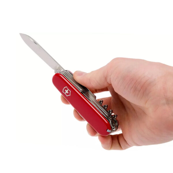 Мултифункционалният Швейцарски Джобен Нож Victorinox Ranger е един от най-тънките джобни ножове Victorinox, който има както дървен, така и метален трион. Инструментите са малки, а ножът е компактен. Рязане, завинтване или отваряне на бутилка – всичко това се прави за нула време с Victorinox Ranger. Джобно ножче за истинските авантюристи! Големият нож е остър като бръснач и има режещ ръб не по-малък от 6 сантиметра. След като се разгъне, няма хлабина никъде. Това го прави подходящ за по-тежки задачи. При отваряне и затваряне на острието чувате познато щракване. Дървен трион Клони с дебелина до китката не са проблем за този дървен трион. Трионът е тънък. Гърбът е с дебелина приблизително 1,2 мм, а назъбванията са с дебелина 1,6 мм. Тъй като гърбът е по-тесен от зъбите на триона, трионът не се забива в дървото и триенето е ограничено. В допълнение към живата дървесина, този трион, разбира се, може да се справи бързо и с палети и дъски. Един инструмент с не по-малко от четири функции, компактен и удобен. Изпилете ноктите си с пилата и отстранете мръсотията под ноктите си с върха. Използвайте другата страна като метална пила, а долната като метален трион. За какво използваш шило? За всички неща, на които не бива да излагате върха на ножа си! Шилото е заострено от едната страна, което го прави много подходящо за маркиране на неща върху дърво. Коя страна на линията трябва да се спазва, когато се маркира нещо с молив? С шило това не е проблем. Полезен е и за пробиване на меки метали. За да маркирате къде трябва да пробиете, например.