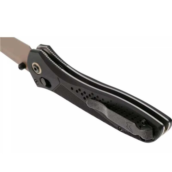 Сгъваемият нож Benchmade 710FE-2401 Seven Ten MagnaCut е необикновен джобен нож в лимитирана версия. Този нож е направен в сътрудничество на двама известни производители на ножове Бил Макхенри и Джейсън Уилямс които смятат работата си за „изкуство с остър ръб“. Макхенри и Уилямс са изобретателите на пионерската технология за заключване AXIS използвана при Benchmade 710 през 1999 г. Отбелязвайки 25-ата годишнина на технологията за заключване на AXIS, новият 710FE-24 има същата голяма рамка и мощен капацитет за рязане като оригинала, но с подобрен вид. Острието на Benchmade 710 е изработено от стомана Magnacut с FDE PVD покритие. MagnaCut предлага ненадминат баланс между запазване на остротата, издръжливост, устойчивост на корозия и лекота на заточване. Отварянето на ножа се извършва лесно с една ръка с помощта на шпилката за палец. Веднъж отворено, блокировката на ключалката гарантира, че острието е фиксирано на място предотвратявайки случайно затваряне. Друга характеристика на Axis Lock е, че може лесно да се използва както от левичари, така и от потребители с дясна ръка. Ръкохватката е изработена от алуминий, лека с удобен и сигурен захват.