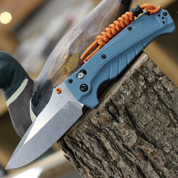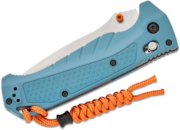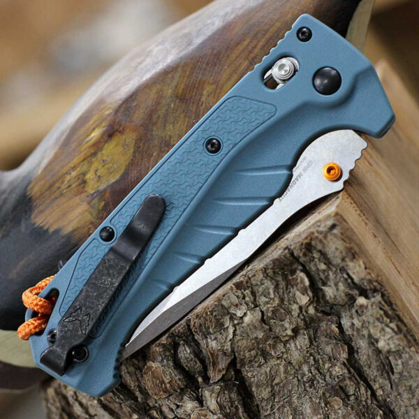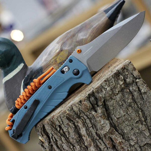 Ножът Benchmade Adira MagnaCut GRIVORY Blue е най-добрият сгъваем нож за всички ваши водни приключения. Изработен с мисъл за прецизност и издръжливост, този здрав нож разполага с 3,9-инчово острие с точка на падане, направено от неръждаема стомана CPM MagnaCut, което осигурява превъзходна устойчивост на корозия във влажна среда. Цветният щифт с висока видимост и заключващият механизъм AXIS улесняват боравенето дори когато ръцете ви са мокри. Независимо дали приготвяте стръв или скалъпвате риба, Adira е задължителен инструмент за водолюбиви, които търсят качество и надеждност в своето оборудване. Не тръгвайте във водата без Адира до вас.