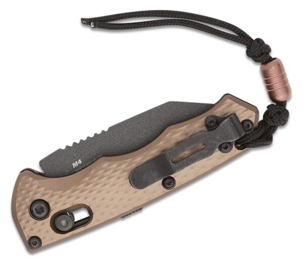 Сгъваемият нож Auto Immunity CPM M4 Aluminum ви потапя в свят на мощност и прецизност. Този фантастичен джобен нож EDC е перфектната комбинация от стил и функционалност, създаден за ежедневна употреба, а освен това наистина привлича вниманието. Острието е изработено от стомана CPM M4, превъзходна стомана, известна със своята изключителна твърдост и издръжливост. Тази комбинация гарантира, че острието на вашия нож остава остро за много дълго време, независимо от предизвикателствата, пред които сте изправени. Това не е кой да е нож, той е верен спътник, винаги готов за изпълнение. Все пак внимавайте с влагата, CPM M4 не е изцяло неръждаема. За щастие, тъмното покритие помага за предотвратяване на ръжда и обезцветяване. Ръкохватката е изработена от висококачествен алуминий, изработват се и самолетни части от същия тип. Този лек материал осигурява отличен баланс и контрол, докато покритието осигурява удобно и сигурно захващане. Добавете поразителният цвят и имате нож, който е не само функционален, но и визуално зашеметяващ.