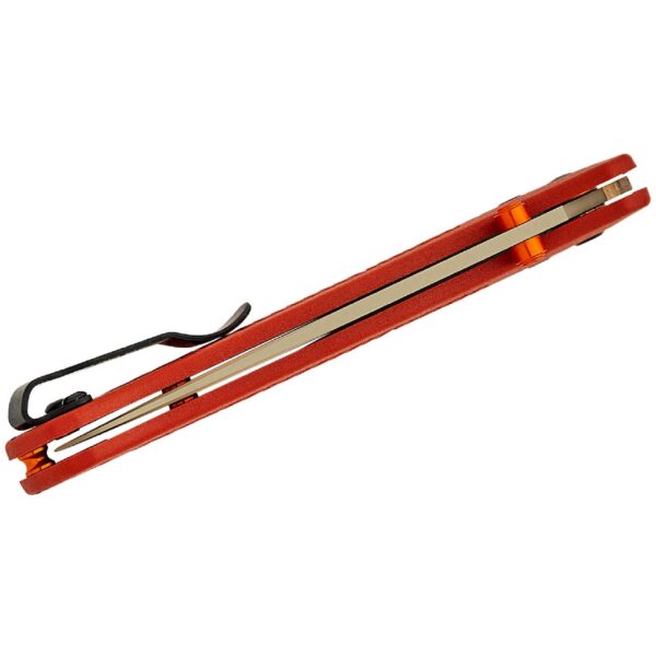 Сгъваемият нож Benchmade Bugout S30V Grivory Rust Orange е смела версия на известния Bugout. Оригиналният Bugout е създаден като истински работещ нож за турист или авантюрист, който обръща внимание на всеки грам. Подобно на своя предшественик, този Bugout е изключително лек, тежи само 70 грама. Но вече като премиум издание. Перфектен за ентусиаст, който търси най-доброто от най-доброто. Острието е изработено от стомана S30V , неръждаема и запазва остротата си много добре с твърдост 60 HRC. Ръкохватка е изработена от Grivory, изключително здрава за теглото си, има щифт за палец, голям отвор за ремък и реверсивен клипс за джоб за дълбоко носене от черен оксид. Заключването на острието става чрез AXIS Lock.