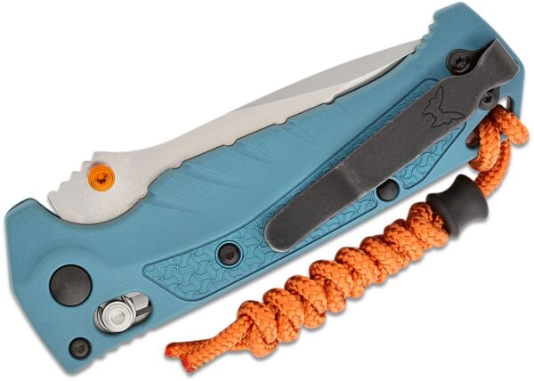 Ножът Benchmade Mini Adira MagnaCut GRIVORY Blue е малката версия на най-добрият сгъваем нож за всички ваши водни приключения. Изработен с мисъл за прецизност и издръжливост, този здрав нож разполага с 3,2-инчово острие с точка на падане, направено от неръждаема стомана CPM MagnaCut, което осигурява превъзходна устойчивост на корозия във влажна среда. Цветният щифт с висока видимост и заключващият механизъм AXIS улесняват боравенето дори когато ръцете ви са мокри. Независимо дали приготвяте стръв или скалъпвате риба, Adira е задължителен инструмент за водолюбиви, които търсят качество и надеждност в своето оборудване. Не тръгвайте във водата без Адира до вас.