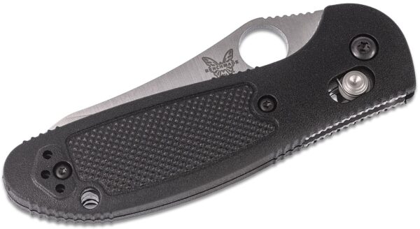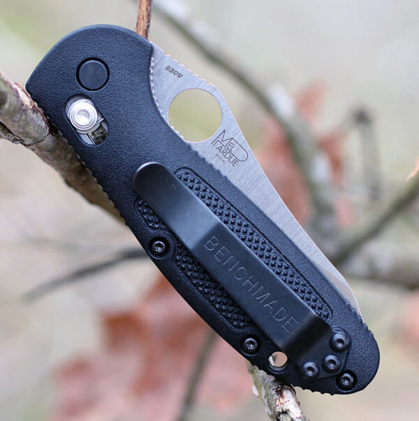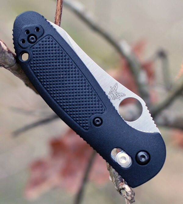 Сгъваемият нож Benchmade Mini Griptilian е практичен EDC джобен нож, проектиран от Mel Pardue. Още от първата си версия преди много години Benchmade Griptilian определено е класика в света на ножовете. Неговата ергономична ръкохватка е перфектна както за лява, така и за дясна ръка, съчетана с различни механизми за отваряне и форми на острието, правят Griptilian легенда в света на джобните ножове. Benchmade реши да надстрои от стомана 154CM до стомана CPM S30V, правейки Mini-Griptilian още по-добър. CPM S30V е един от малкото видове стомана, които са специално разработени за ножове. Той запазва добре своята острота и е много устойчив на корозия.