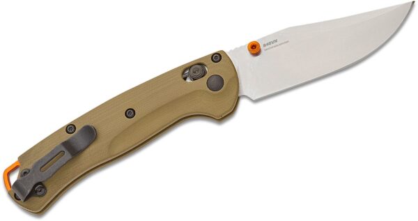 Ножът Benchmade Mini Taggedout S45VN G10 OD Green е перфектен за лов, проектиран за производителност и практичност. Този компактен, но издръжлив нож разполага с остро като бръснач острие CPM-154 с SelectEdge®, което го прави идеален за всяка задача в полето. Оранжевата ръкохватка изработена от Grivory осигуряват сигурно захващане при всякакви метеорологични условия, гарантирайки, че ще остане заключен в дланта ви. Независимо дали приготвяте храна в лагер или полеви дивеч, Mini Taggedout® е универсален и основен инструмент за ловци, който се удвоява като опция за ежедневно носене поради удобния си размер.