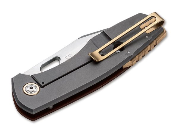 Boker Plus F3.5 Micarta, проектиран от Jesper Voxnæs е последователната еволюция на добре познатия Boker Plus F3, който беше един от най-популярните ножове в нашата гама благодарение на изключително здравата си конструкция. F3.5 убеждава с почти идентични размери и е снабден с надеждна рамка от неръждаема стомана. Острието, направено от D2 с лек завършек stonewash се отваря с помощта на отвора за палеца. Ергономично оформената дръжка изработена от Micarta е много удобна, а детайли като бронзово оцветените анодизиран клипс (тип-нагоре) и спейсъри придават цветен акцент. С висококачествен найлонов калъф за съхранение.