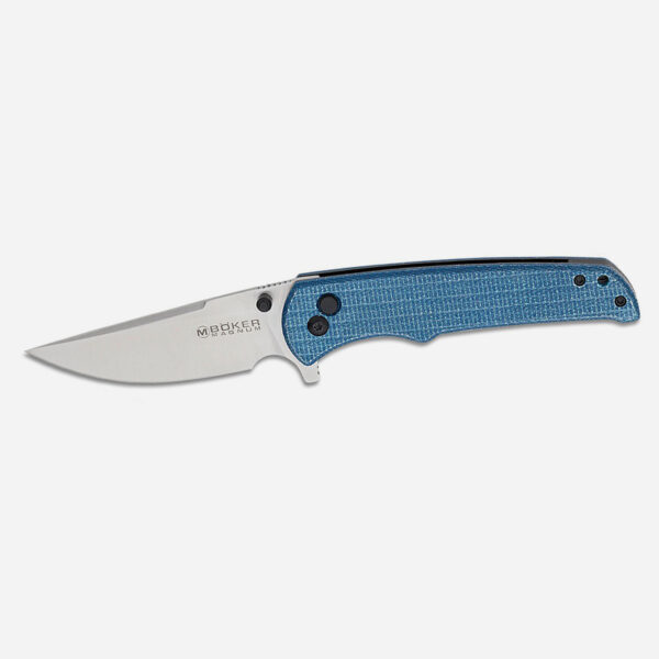 Ножът Boker Magnum Bluejay 440A Micarta предлага качествено действие и дизайн на бюджетна цена, която със сигурност ще ви допадне. Агресивният профил на острието го прави да прилича на нокът с остър пронизващ връх. Острието може да се разгъне с натискане на флиперчето или с движение на шпилките за палец и се отваря плавно благодарение на страхотната си шарнирна конструкция. Bluejay е обезопасен със заключване с бутон, което е забавно за игра и издържа на многократна употреба. Черните вложки от неръждаема стомана са обвити с тъмносиня Micarta, което наистина привлича погледа. Микартата е чудесна за EDC ножове благодарение на присъщата и устойчивост на влага. Този нож се предлага с джобен клипс от неръждаема стомана, пригоден за дълбоко носене.