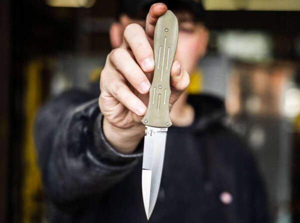 Ножът Böker Plus Atropos VG10 Micarta е проектиран от американският дизайнер на ножове Чък Гедрайтис, в сътрудничество с Böker. Böker Plus Atropos е тактически джобен нож, който се корени в наследството на емблематичните проекти на Rex Applegate. Този джобен нож има симетричен дизайн, характерен с едностранно заточеното си острие. Ножът се отваря плавно благодарение на сачмените лагери и диска за палец. Ножът се предлага с клипс с накрайник нагоре и найлонова кания. Острието е изработено от стомана VG10. Това е много хубав и популярен вид стомана от Япония. Тя е устойчива на корозия, лесно се заточва до остър като бръснач ръб и запазва много добре остротата си. За финишното покритие на това острие е избран процесът „stonewash“. Процесът stonewash включва поставяне на острието в барабан с керамични камъни, след което се търкаля в продължение на няколко часа. Резултатът е финиш, който изглежда прецизно полиран или грапав в зависимост от версията. Предимството на измиването с камъни обаче е, че следите от употреба са много по-слабо забележими. Това го прави популярен избор за ножове, които се използват много често.