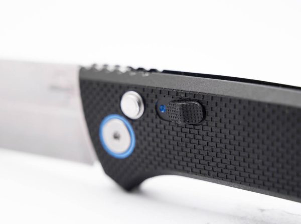 Böker Plus Strike бяга от ежедневието и освежава, като разнообразен и тънък автоматичен нож с EDC характер. Острието е изработено от D2 стомана, здрав бутон за заключване с допълнителен плъзгач осигурява два пъти повече острието по време на употреба и значително минимизира риска от порязване. Ръкохватката е изработена от Grivory, осигурява здрав захват дори при мокри условия и подчертава лекотата на джобния нож. Анодизираните винтове и винтът на оста на острието със синя рамка осигуряват декоративни акценти.