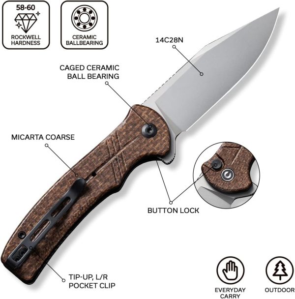 Характеристики на Нож Civivi Cogent 14C28N Brown Micarta