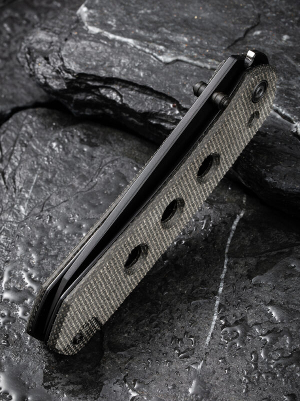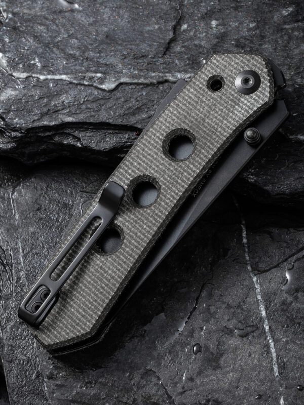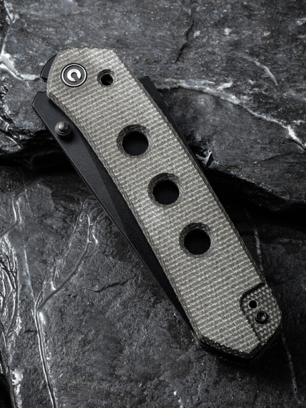 Ножът CIVIVI Vision FG Nitro-V Micarta е уникален джобен нож, проектиран от Snecx Tan. В Инстаграм той е известен със своите уникални персонализирани ножове. Със своите обичаи той придава ново значение на термините „прецизност“ и „иновация“. Vision е отличен пример за това. Ножът е усъвършенстван с разработения от Snecx „механизъм Superlock“. Механизмът „Superlock“ е нещо, върху което Snecx и WE Knife работят от години. Той работи по следния начин: гръбнакът на дръжката е подсилен с титаниев прът, който се закача точно под джобната щипка в дръжката. Краят му се натиска в изрез между острието и щифта с помощта на пружина в дръжката, като блокира острието. Натиснете пръчката назад и острието ще се отключи. Това е изненадващо интуитивно заключване, идеално за използване както от лява, така и от дясна ръка! Дизайнът на Vision също е типичен за Snecx и е подсилен с много интересни дизайнерски елементи. Например, просто погледнете тези кръгли изрези в дръжката. Те могат да бъдат открити и при много от неговите персонализирани ножове. Да не забравяме: материалите също са страхотни!