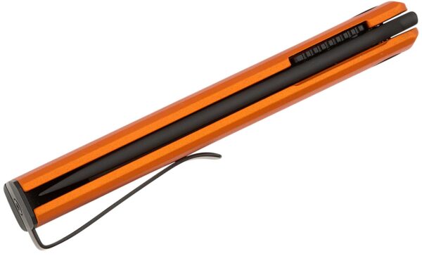 Ножът Fox FX-543 ALO Becut Aluminium въплъщава една проста концепция – чистото рязане, без да се натрапва. Изключително функционалното острие с капковиден връх е изработено от качествена стомана Becut с черно покритие и осигурява полезност с голяма режеща повърхност. Острието се разгръща с фин флипер, който няма да се закачи, когато Chnops попадне в джоба ви. Когато ножът е затворен, острието изчезва в дръжката, чийто семпъл дизайн е идеален за ежедневно носене. Тази версия се предлага с оранжеви алуминиеви дръжки с черен анодизиран алуминиев дистанционер, който осигурява тактическа солидарност на един вече класически нож. Джобната щипка от неръждаема стомана е реверсивна и позволява дълбоко носене.