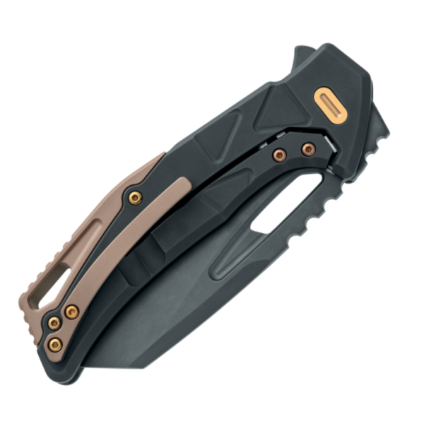 Ножът Fox Chronos MagnaCut Fatcarbon е синтез на безупречно представяне и изтънчен дизайн. Стоманеното острие изработено от стомана Magnacut с твърдост HRC 62-64 и с черно PVD покритие което предлага изключителна устойчивост и прецизно рязане. Ръкохватката е направена от въглеродни влакна Dark Matter не само придава лекота, но и вечна елегантност. Техническите детайли като щипка, дистанционер и винтовете са направени от бронзов анодизиран титан придават нотка на класа и устойчивост. С обща дължина от 20 см и острие от 9 см с дебелина 4 мм, този нож е перфектно балансиран за оптимална употреба. Fox Kronos тежи само 125 грама, което го прави удобен за носене при приключения на открито или ежедневна употреба. В комплект с калъф от Nylon, Fox Kronos е функционално произведение на изкуството, което се отличава със своята качествена изработка и надеждна работа, готово да бъде ваш доверен спътник във всяка ситуация.