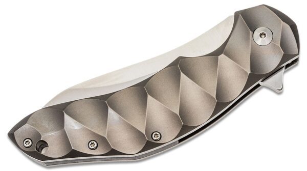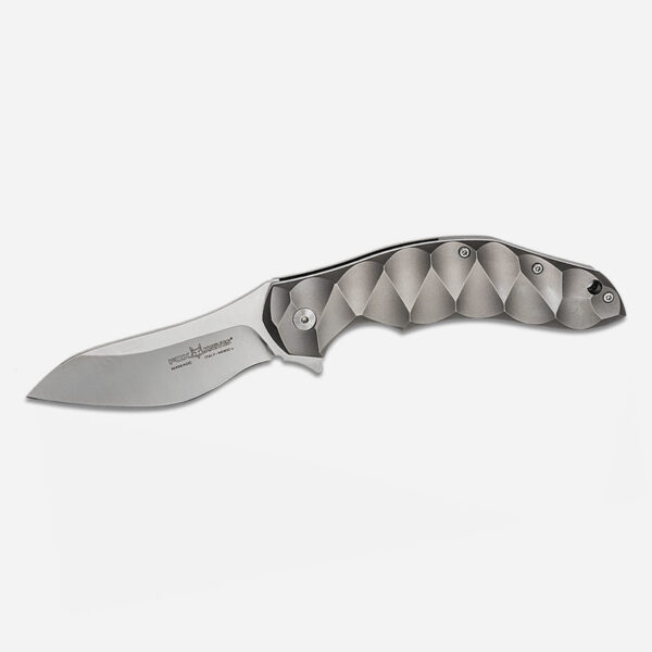 Ножът Fox Knives Flipper N690Co Titanium е с типичният почерк на Йенс Ансо, който всъщност напомня на скачащ делфин с плавните си линии. Но в този случай флиперът, разбира се е реализиран и като удобен механизъм за отваряне на острието, което осигурява на левичарите и десничарите удобен механизъм за отваряне. Структурата на дръжката, характерна за Йенс Ансо, се среща и при много от неговите желани ножове и осигурява изключителен захват. Острието на N690 се заключва с frame lock. Подвижният клипс (с върха нагоре) спомага за удобното носене. Включва отвор за каишка и острие без покритие. Чирените на дръжката от двете страни са изработени от титан.