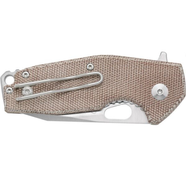 Ножът Fox Knives Suru е красив джобен нож, проектиран от Jesper Voxnaes. Благодарение на своя размер и удобен дизайн Suru е перфектният нож, който винаги да държите наблизо. Версията на Fox Sure от въглеродни влакна спечели наградата „Нож на годината 2018“ през 2018 г. на изложението Blade Show. Най-престижната награда, която показва колко забележителна е тази колекция ножове. Тази ексклузивна версия е подобрена с натурална микарта – лек композитен материал, изработен от синтетична смола и лен. Страничната част на ключалката е изработена от титан. Острието е изработено от неръждаема стомана Böhler M398. Тази стомана запазва остротата си за наистина дълго време, което я прави идеална за ежедневна употреба. Острието е подобрено със сатенено покритие. Можете ясно да разпознаете ръката на Вокснаес в Suru. От фината вдлъбнатина в дръжката до отвора за палеца във формата на комета: ножът излъчва датски дизайн. В допълнение към отвора за палеца можете да използвате и флипер, за да отворите бързо Fox Suru.