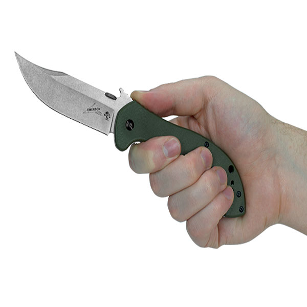 Ножът Emerson CQC-10K на Kershaw е от най-новите модели излезли от сътрудничеството между двете марки. CQC-10K е върху базата на Emerson Appalachian с типичeн bowie клин, което може да ползвате в голям диапазон полеви задачи. Неръждаемата стомана 8Cr14MoV задържаща добър ряз и позволява бърза и лесна заточка. Покритието stonewash намалява следите от драскотини по острието. Дръжката е с изразена крива, което намалява умората в ръката при продължителна работа. Като модел от серията разработен с Emerson, разполага с така наречената „вълна“, с която може да отваряте ножа докато го изтегляте от джоба. Клипсът позволява монтаж от ляво и дясно.