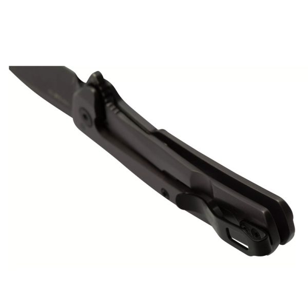 Ножът Flyby е джобно ножче с елегантен дизайн. Всъщност той е вдъхновен от формата на изтребител. Острието е изработено от D2 стомана. Здрав вид инструментална стомана, която е част от света на ножовете от години. Той остава остър за дълго време, може да понесе удари и е лесен за заточване. D2 не е напълно неръждаем, така че го почистете, след като влезе в контакт с влага. Flyby е подобрен с механизъм за подпомагане на отварянето, можете бързо и без усилие да го отворите с флипера, мощната пружина прави това възможно. Когато натиснете флипера леко надолу, пружината поема, когато се отвори, острието се заключва на място от солидна ключалка на рамката. Ръкохватката е изработена от неръждаема стомана със сиво PVD покритие. Ножът има сменяем изключително дълбок клипс за джоб, което улеснява носенето на ножа в по-дълбоките джобове на панталон.
