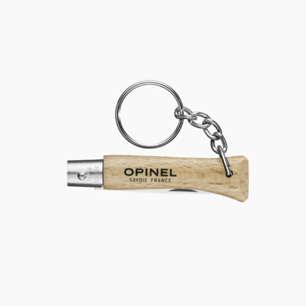 Ножът ключодържател нож №4 Opinel Inox Бук е малък и ефективен в ежедневието. Изработен от неръждаемa стоманa избрана да гарантира както висока устойчивост на корозия, така и висока механична производителност. Острието предлага отлична острота и висока устойчивост на абразия (износване), което му позволява да издържа на редовен контакт с твърди материали, като керамика, преди да се наложи повторно заточване. Неръждаемата стомана има предимството да не изисква специална поддръжка при нормални условия на употреба, за разлика от въглеродната стомана. Класическото острие на Opinel е приело форма на Yatagan. Ръкохватката е направена от бук, най-често използваната дървесина за производството на дръжки Opinel.